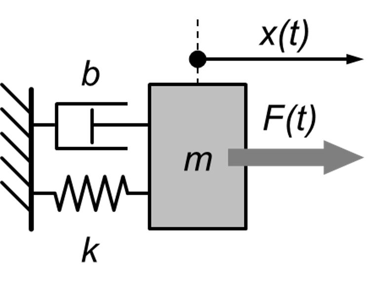 \[m\ddot{x} + b\dot{x} + kx = F(t)\]여기서