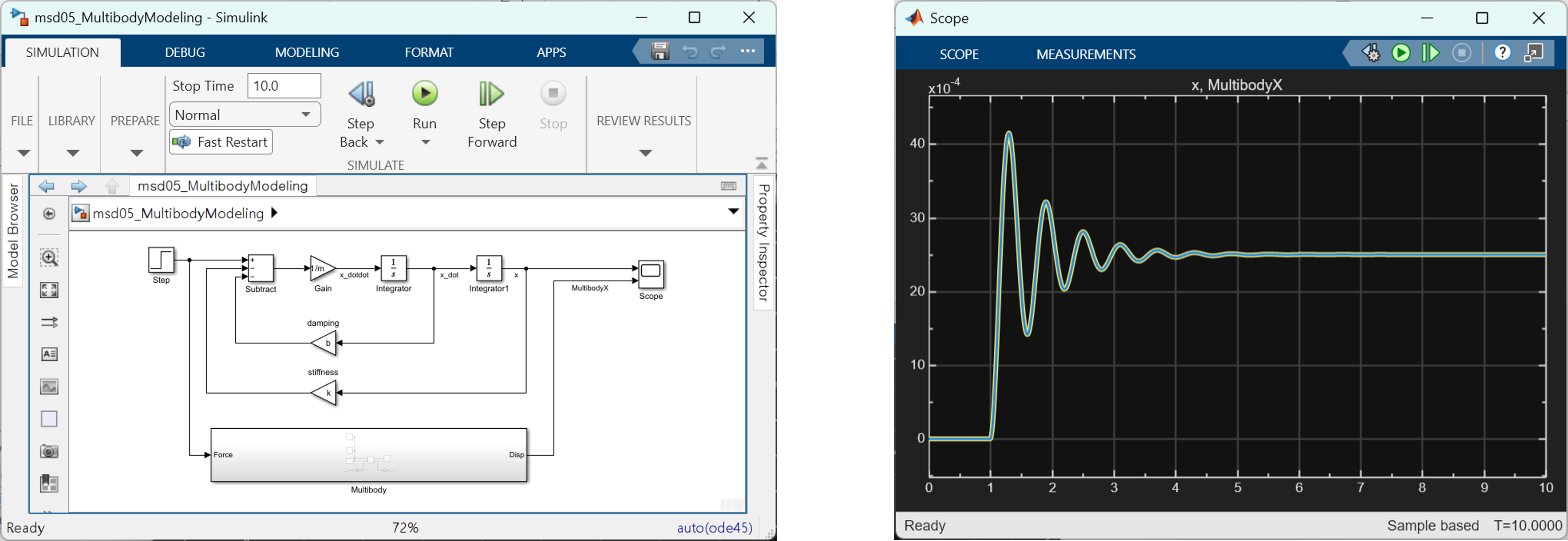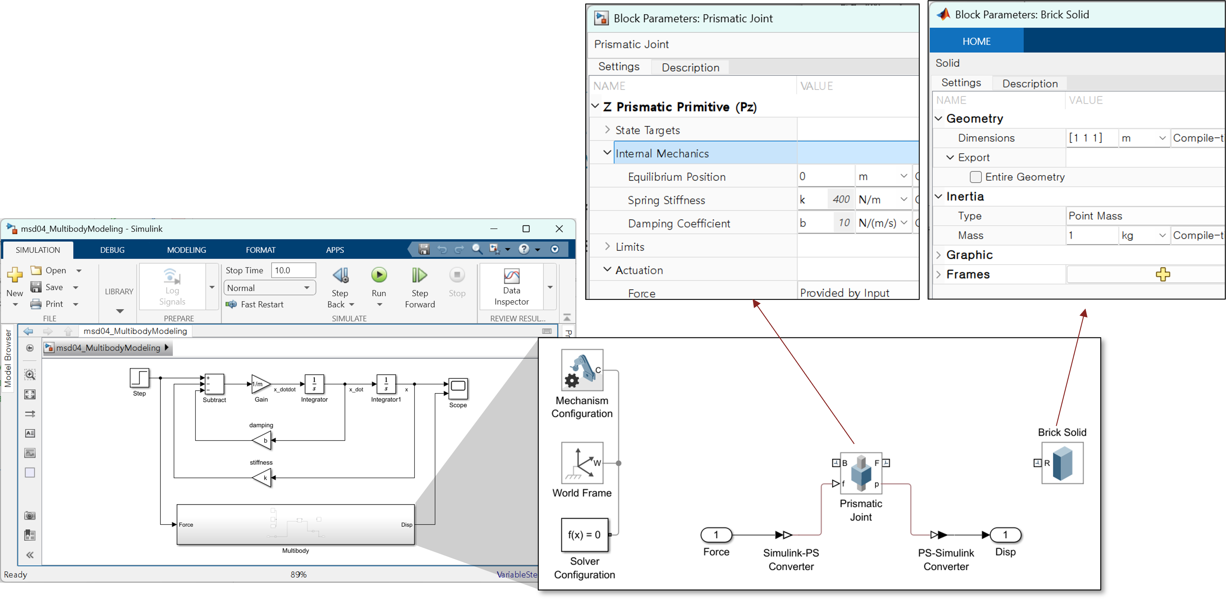 - Simulink 입력/출력을 Multibody 모델과 연결