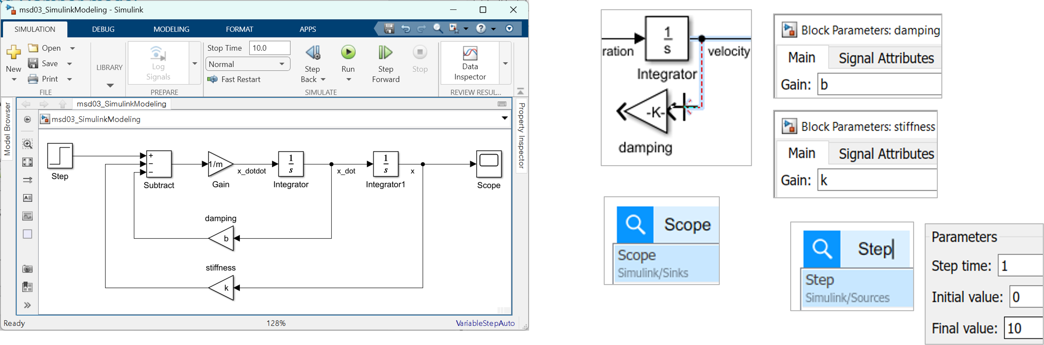 (msd03_SimulinkModeling.slx 파일을 열어 여기부터 실습해볼 수 있습니다.)
